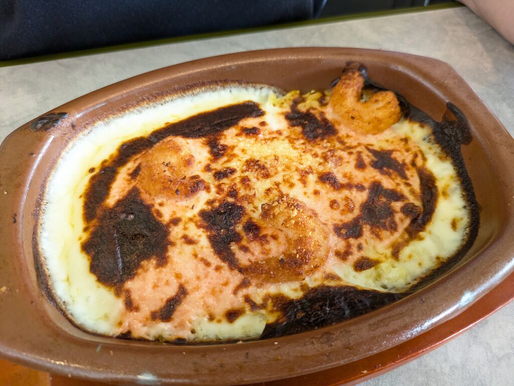夜訪問しました!小エビのサラダが大好きで、必ず注文します。コーンスープと温玉のせのミートドリア。熱々で美味しかったです!安くて美味しいので、度々利用します☆ (訪問:2025/07/02)