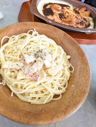 お昼を食べてきました。若鶏のディアボラ風、モッツァレラピザ、カルボナーラなど各々好きな物を注文して食事を楽しみました。どの商品もお手頃価格ですが、ボリュームもしっかりあり大満足です。炭酸水を無料で飲めるのも嬉しいですね。 (訪問:2025/08/11)