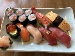 念願叶って初来店。ずっと行きたかったので期待大です。栃ナビポイントの割引を使わせて頂きました。握りが食べたかったので【よくばり寿司定食】を注文。サラダと茶碗蒸しが食べ終わる頃お寿司登場、丁寧な仕事してくれてます、シャリの大きさは私には丁度良く、握り加減も好みで美味しかったです。茶碗蒸しのお出汁と柚子の香りが最高、あら汁も臭みなく美味しかったです。お店の雰囲気、接客共に良かったので、また寄らせて頂きます。ご馳走さまでした。 (訪問:2025/11/19)