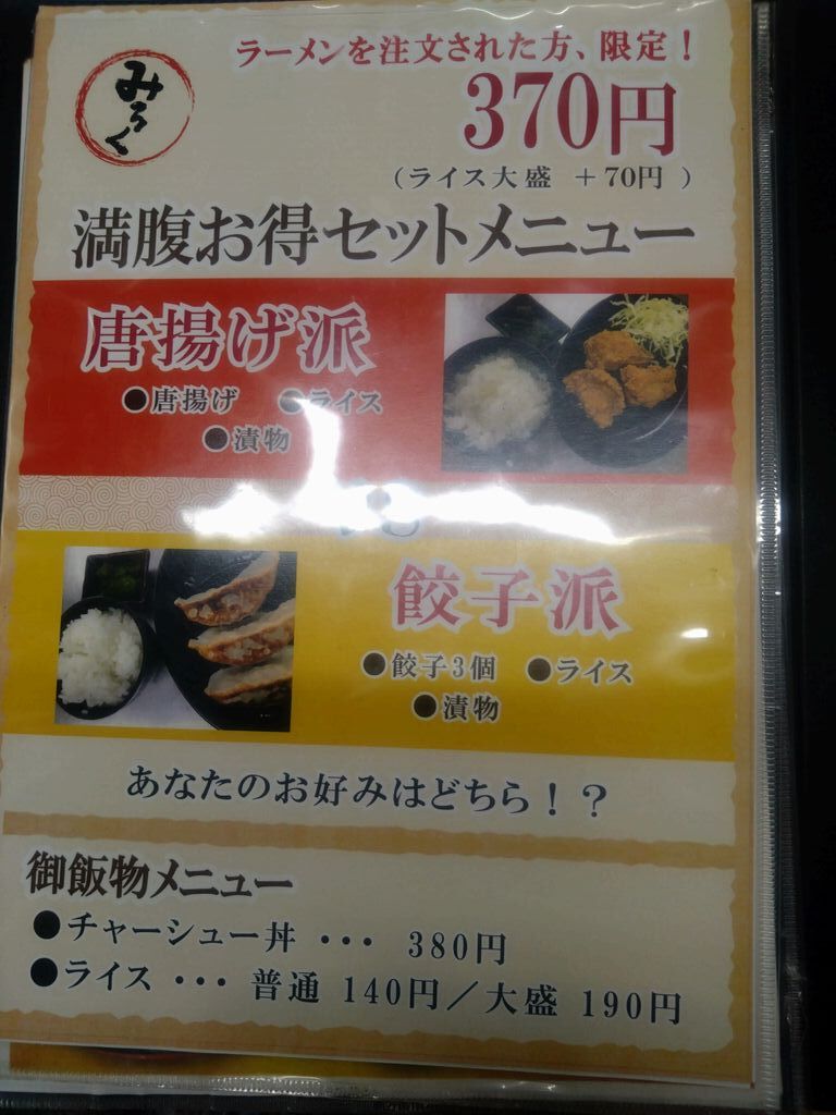 夕飯に久しぶりに伺いました。白味噌野菜ラーメンと満腹お得セットの餃子を注文!白味噌ラーメンは、甘めが多いイメージですが、こちらは、少し塩っぱめですが、ほどよく、餃子は大きめで、ご飯も多くボリュームがあります。また餃子が美味しいので、ご飯が進みます。ご馳走様でした。 (訪問:2026/01/12)