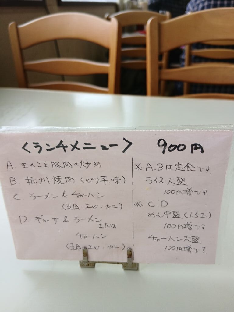 温泉に入りに来ると、必ずお店の前を通るのですが、初めて食べに来ました。今日は、月曜日の平日です。ランチが4種類あって、その中のBの杭州焼肉ランチを、食べて来ました。杭州焼肉は、ピリ辛ですが、たまごの黄身が、その辛さをやわらげて、ごはんが進み、ごはん大盛りにして大正解でした。とてもうまかったです。ごちそうさまでした。 (訪問:2026/03/30)