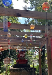 風鈴のライトアップを見に行きました。ライトアップされた風鈴は幻想的で、晩夏の夜風にあたりながら涼し気な音を楽しむのはなかなか風流でした。たくさんの風鈴の中に7つ、ひらがなが書いてあるものがあり、ひらがなを探して言葉をつくるゲームも開催中でした。子どもたちはひらがな探しを楽しんでいました。 (訪問:2025/08/24)