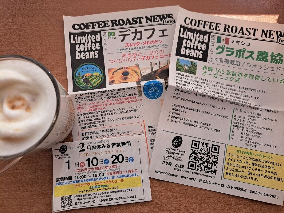 11.25火曜日から12月中旬までお休みになると知り、仕事後に電話注文、閉店時間1時間切っていましたが、伺うことができました(忙しい中、ありがとうございます!) 今回は注文後に焙煎のデカフェ豆2袋と ギフト用にパックされた明保野コーヒー、オニバスの種をオリーブ油でローストした珍しいスナック(岩塩と黒胡椒)を買いました コーヒーロースト宇都宮店さんの季刊誌『暮らしのコーヒー』第十号も複数一緒に入れてくださり(←私の大好物!)、帰宅後に家族でこちらに載っていたコーヒークイズをしました 忙しさが加速していく年末年始、ゆっくりと営業再開を楽しみにしています (訪問:2025/11/22)