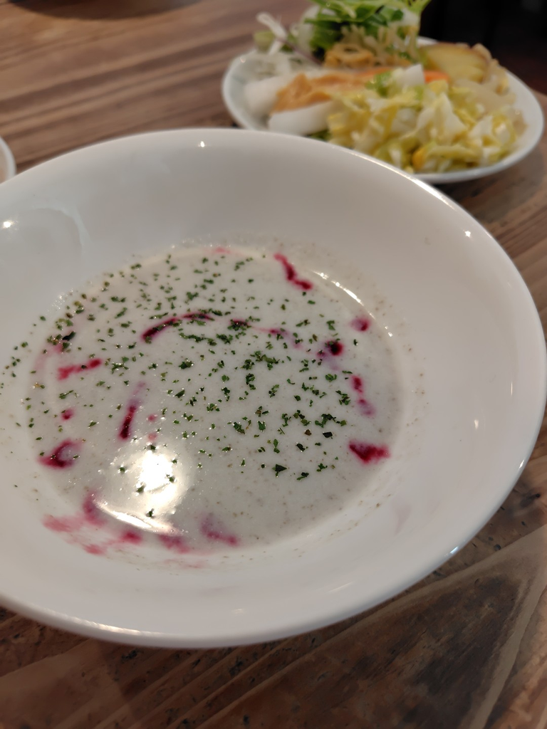 久しぶりに行きました♪スープもメインも美味しいけど、やっぱりサラダが何より美味しぃ (≧▽≦) ♪ 野菜スティックに付ける味噌も、和えてあるドレッシングも、みんなみんな美味しくて、お腹いっぱいいただきました♪ (訪問:2025/12/28)