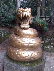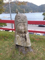 中禅寺湖の北の岸、男体山山麓の景勝の地にある神社に初参拝です〜(^人^)☆「中宮祠」って何〜?!と思っていましたが…男体山山頂の「奥宮」?と市内の本社の中間にあるから「中宮祠」と呼ばれているのだとか(^^ ;)ほ〜んと何にも知らずに訪れましたが鳥居をくぐると何だかパワーを感じましたぁ( ꈍᴗꈍ)☆そうそう七福神があちこちに祀られていて七福神めぐり?ができちゃいます( ꈍᴗꈍ)♪「願いかなえます」と黄金のマスもどど〜んとお出迎え♪御朱印を求める方々もた〜っくさんいらっしゃいました。男体山登山のスタートもこちらから♪そうそう周辺あちこちにト◯ロ?さん的な木彫りがありました。ほっこり癒されましたぁ( ꈍᴗꈍ)♪またゆっくりおじゃましたいです〜☆ (訪問:2025/10/18)