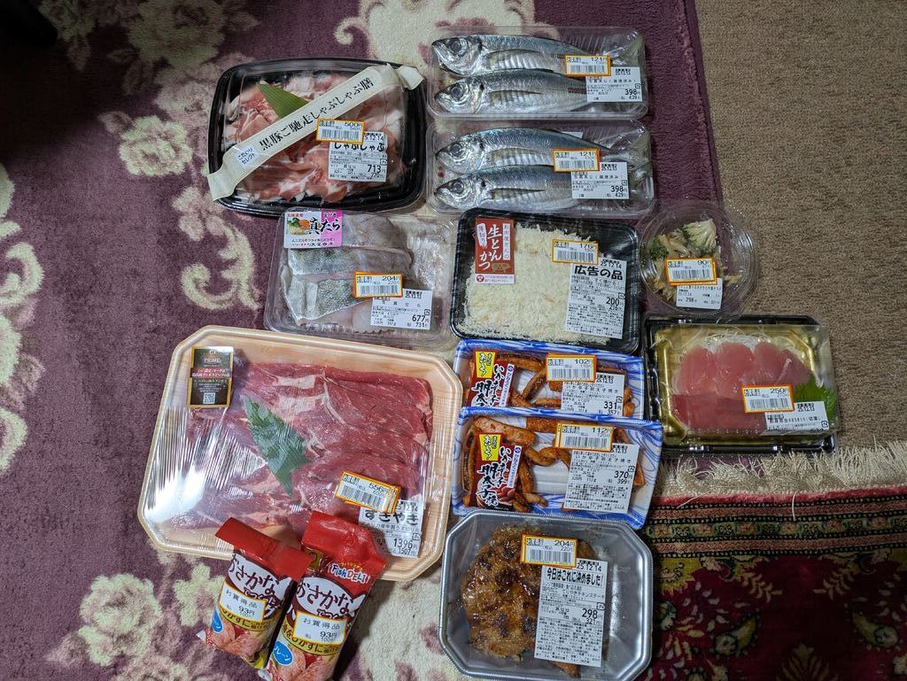 整骨院の帰りに寄りました。7時半なので値引きの時間かな〜?ビンゴ!血湧き肉躍る値引きシール(笑)とくに丸ごと一匹の鯵と真鱈の3切れ入りに感動!明日の朝は鯵の塩焼き夜はすき焼きに決定です。 (訪問:2025/12/13)