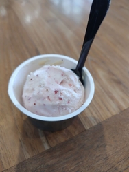天平の丘での花見のあとに道の駅しもつけに寄りました。8歳の息子のリクエストでアイスをべることに。ピッコロの生いちごミルクと、カップの2種盛りいちごソルベとせとかをチョイス。アイスの味がしっかりしていて、美味しかったです。ひとスプーンぶんのあいすがおまけでえらべるのもイイですね。 (訪問:2025/04/05)