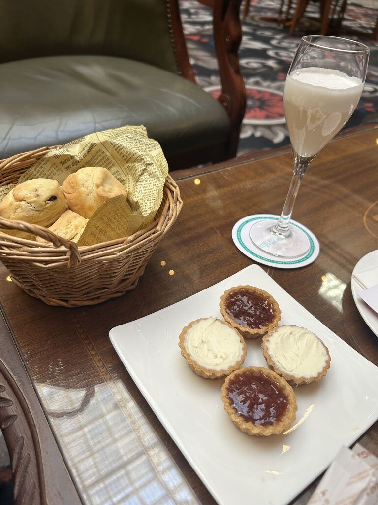 2025年のハイドパークでのティータイムは、今日でお終い^_^だから今日は、ゆっくりセイロンティー&ミルクをティーポットでいただきました。冷めないようにティーポットと同色のTea Cozyが付いてきました。オシャレですね!ラウンジのツリーも素敵ですが、2階の踊り場から眺めるクリスマスツリーを含めた光景は、更に素敵(ღˇ◡︎ˇღ) (訪問:2025/12/23)