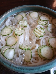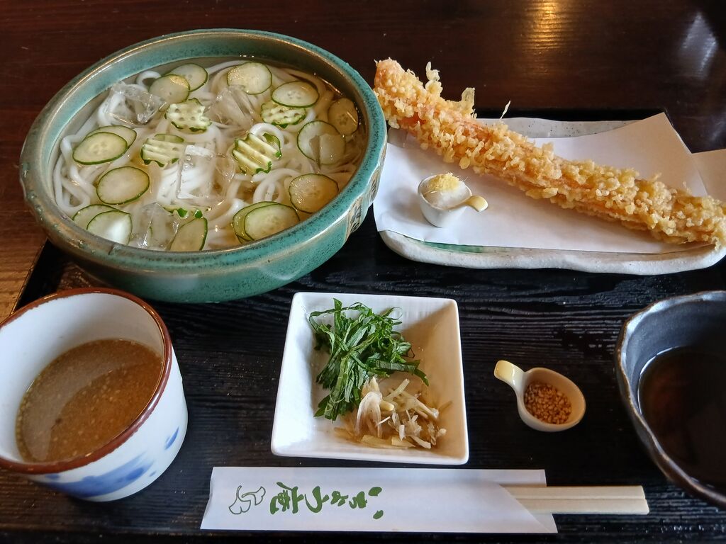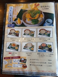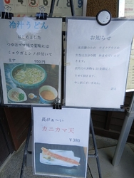 今日から9月なのに、35℃越えの暑さに、冷たいうどんが食べたくなり、食べに来ました。すると、入り口に、冷汁うどんとカニカマ天の案内が出ていたので、何も考えずこの2点を、食べて来ました。冷汁うどんは、つけ汁がゴマ味で、薬味がしそとみょうがで、うどんの中には、キュウリも入っていて、すごくサッパリして、歯ごたえがあり、とてもうまかったです。また、カニカマ天は、20㎝以上あると思いますが、大根おろしとしょうがを、天つゆに入れて食べましたが、これまたとてもうまかったです。ごちそうさまでした。 (訪問:2025/09/01)