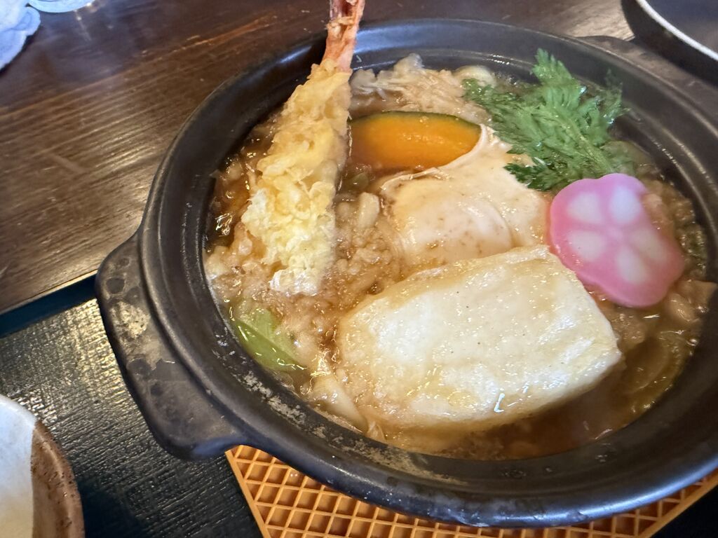 子連れおすすめとのことでいちょう庵さんに行きました!うどん専門店ですが、丼もの、おにぎり、いなり寿司、唐揚げなどもあるのでメニューが豊富です。味噌煮込みうどんにお餅をトッピングをしました!熱々で運ばれてきますが、子供のお世話をしてるとちょうど食べ頃でした!海老天に大きめのかぼちゃなど具沢山でしっかり煮込まれていて美味しかったです!でも煮詰まって濃くなりすぎずに一滴残さず食べられました。それくらい美味しかったです♪柚子が別皿で付いてくるので味変ができるのも良かったです。子供は冷たいうどんと唐揚げを食べていましたが、ほぼ1人で食べるくらい気に入ったようでした。また行きたいと思います。 (訪問:2026/02/11)