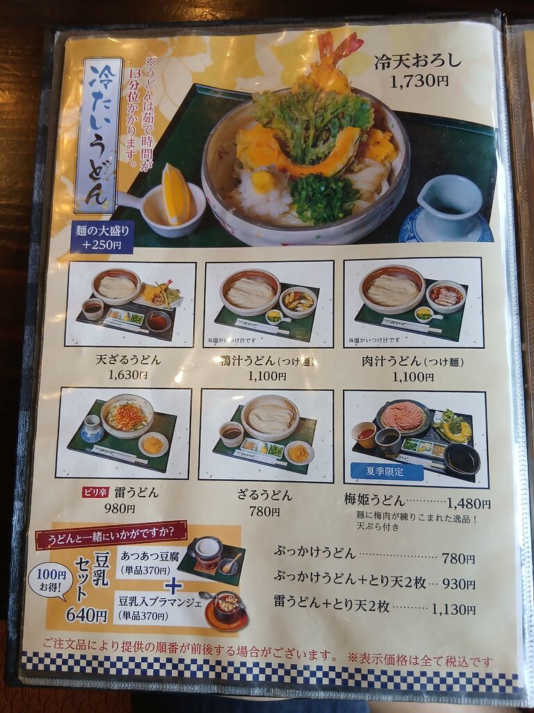 久しぶりにランチで伺いました^ ^天ざるうどん、ざるうどん(大盛り)、いなりずし、豆乳ブラマンジェを注文。コシがありモチモチっとした麺が大好きです♡デザートもおしゃれでとっても美味しい♪栃ナビクーポンで5%オフになりました。ありがとうございます。夏季限定の梅姫うどんも始まったので、また行きたいと思います! (訪問:2025/05/04)