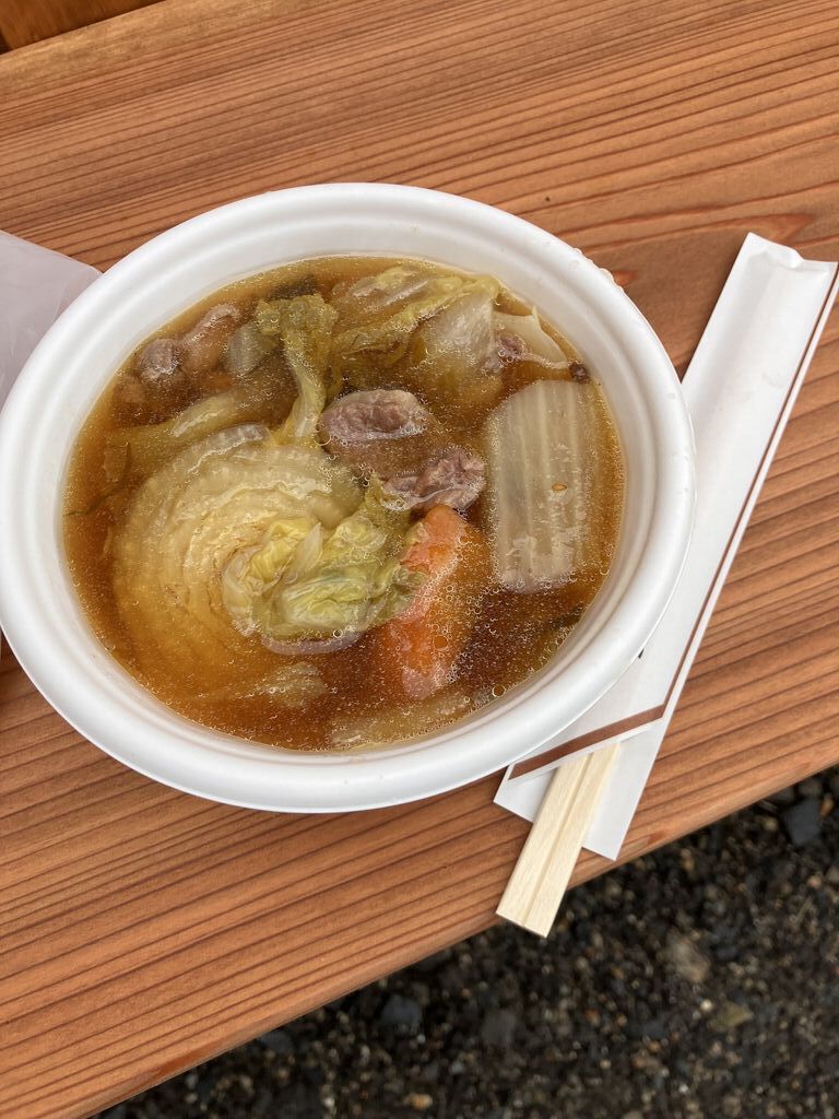 株式会社Growさん主催のクリスマスマルシェに出店されていました。とても寒かったので、身体があたたまりそうな「牛すじ煮込み500円」をいただきました。牛すじ煮込みといっても、たくさんの種類のお野菜がたっぷり入っています。白菜や大根は、お箸で持つと崩れてしまうくらい、やわらか~く煮込まれています。お野菜や牛すじの美味しさはもちろん、スープもまた絶品なんです。多くの具材が煮込まれたスープはとてもコクがあって、隠し味に入った特製の調味料がちょっとピリッとして身体があたたまります。寒いイベントにはもってこいのメニューですね。美味しい幸せをありがとうございました。ごちそうさまでした~。 (訪問:2025/12/21)