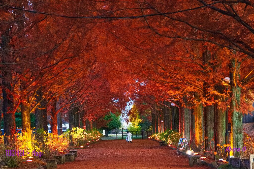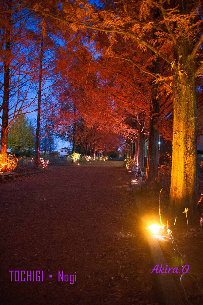 メタセコイアのライトアップがされているということで行ってみました。実は25日(祭日明けの火曜日)に行ったのですが休館日で入れませんでした。外から見た感じだとまだ葉が多くありいい感じでした。ライトアップは日没後からとなっているので5時ころでしたが早目に行ってみました。煉瓦窯の見学などをして時間をつぶしましたが、落ち葉も多くいい感じの写真が撮れました。多分25日は落ち葉が少なく地面の落ち葉が少なかったので28日に撮影出来てよかったと思います (訪問:2025/11/28)
