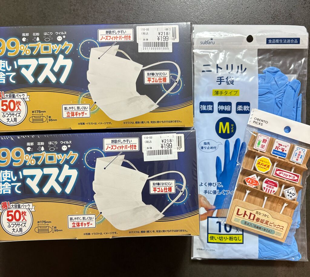 キャッシュレスキャンペーンでお得になるのでお買い物に行きました。50枚入りのマスクが218円とお買い得でした。可愛いピックスを見つけたのでお弁当用に購入しました。これで少しは可愛らしいお弁当になりそうです。 (訪問:2025/12/13)