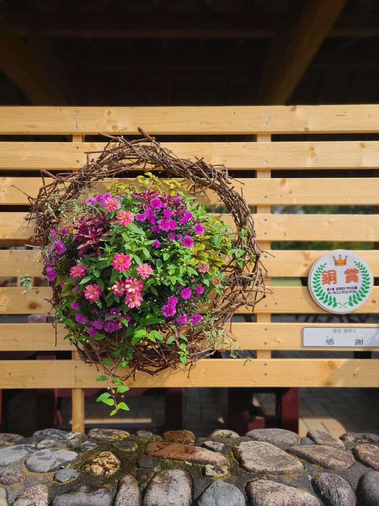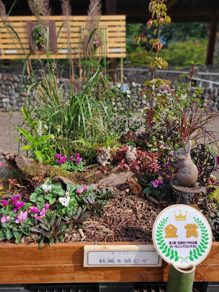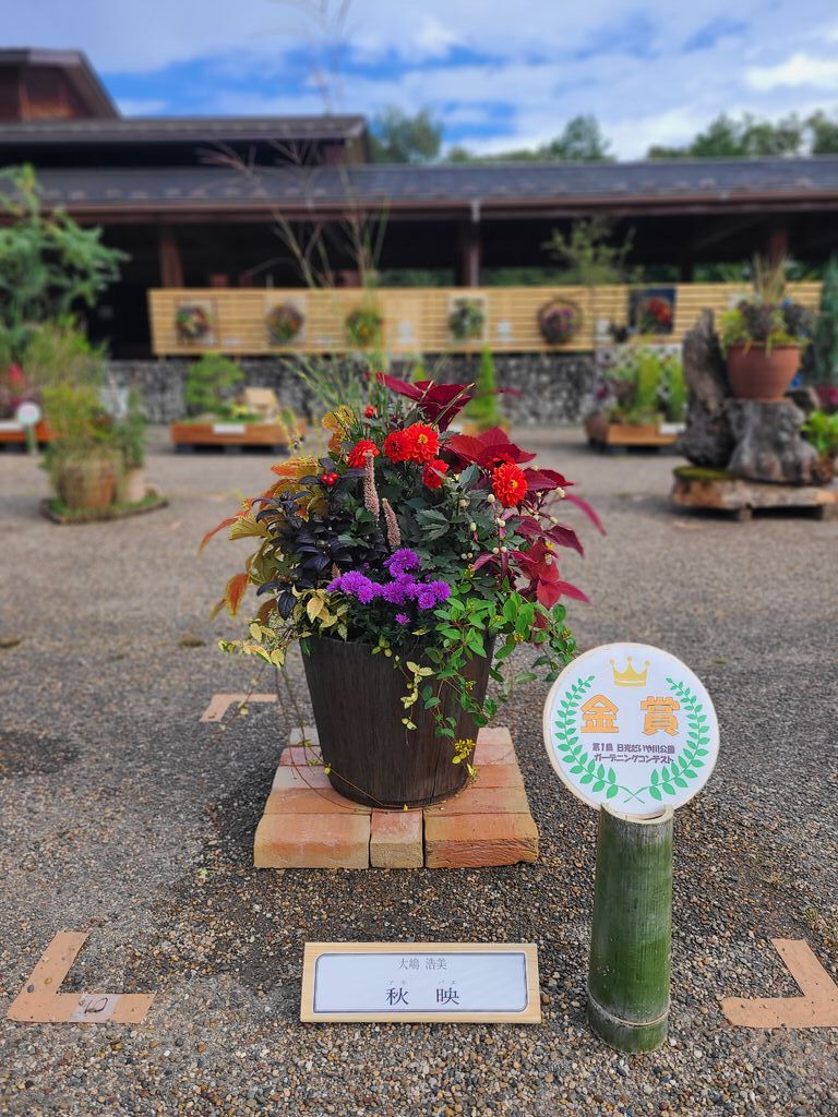 土曜日の朝、だいや川公園へウオーキングに出かけたところ、「まるごとにっこう市」や「ガーデニングコンテスト」が開催されており、とても賑やかでした。秋の花々が園内を美しく彩り、パレットガーデンやコンテナガーデン、ハンギングバスケットなど、受賞作品の花たちはどれも見応えがあります。 (訪問:2025/10/04)