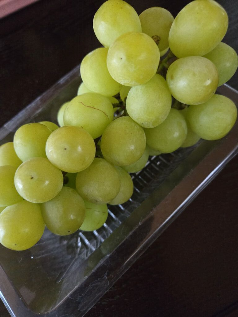 こちらのブドウをいただきました。雄宝という種類の黄緑色した実のブドウです。皮ごと食べられて、種無しなので食べやすかったです。甘みのなかに酸味もあって、食後のデザートに美味しくいただきました。いくらでも食べられそうです。 (訪問:2025/08/12)