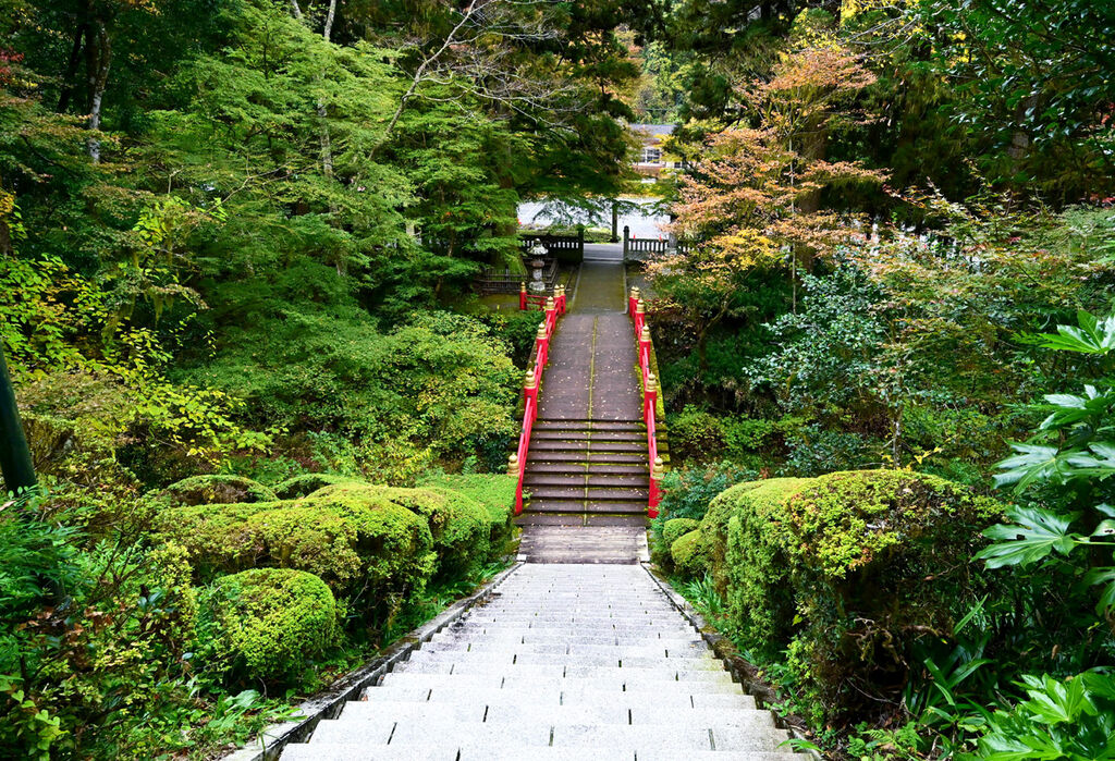 八溝山地の奥深い自然の中に、臨済宗妙心寺派の名刹、雲巌寺はあります。山門の正面にある朱塗りの反り橋を渡り、石段を登ると、釈迦堂、獅子王殿が正面に一直線に並びます。俳聖松尾芭蕉は、この地で「木啄も 庵は破らず 夏木立」の句を詠みました。