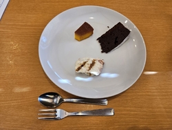 久しぶりに伺いました。ランチセットの牛ほほのペンネ(プラス100円)、キャベツとえびのトマトクリームパスタ、黒烏龍茶、珈琲を頼みました。デザートと自家製パンもついていて1485円でした。 (訪問:2025/09/07)