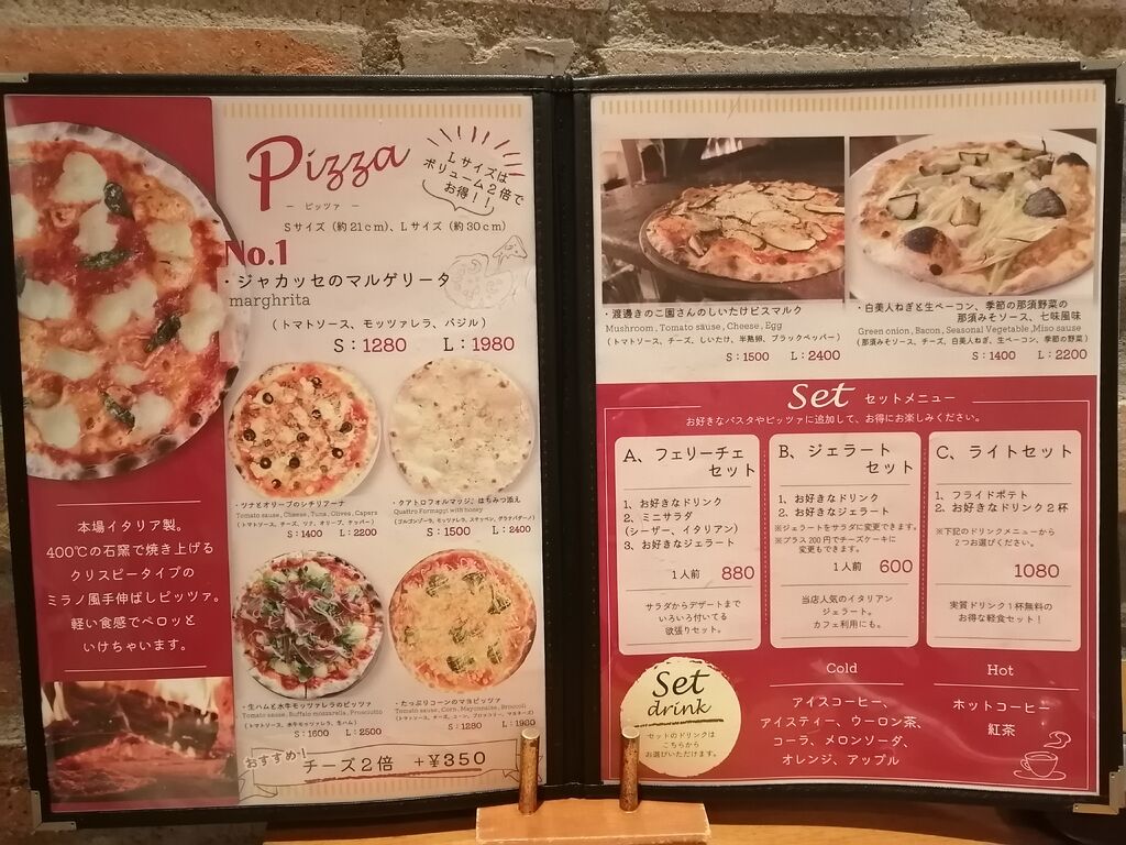 初来店です。以前から一度行ってみたかったイタリアンのお店です。息子がシューズを購入する為、那須ガーデンアウトレットに。ちゃっかりついて行き、ごちそうになってしまいました。①揚げなすとローストベーコンのトマトソースパスタ②美人ネギと生ベーコン、季節の那須野菜の那須味噌ソース七味風味の2品を注文。品名がやたら長くて笑える。トッピングとして、グラナバダーノチーズも注文。パスタの細さは1.4ミリの細めの麺でした。自分でチーズマシンでグルグル削るのが何か楽しい。味的には万人受け付けで食べやすい。ピザはかなり薄めの生地でビールのつまみに合いそうな軽いピザです。美味しかったです。ごちそうさまでした。赤くて大きなピザ窯が印象的でした。 (訪問:2025/06/05)