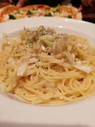 お買い物の途中でピザが食べたくなり入店。人気店でしたがお昼でも待ち時間20分で入れました(≧∇≦)ピザは定番マルゲリータを♪クリスピータイプで美味しく4歳の子供もペロリと食べました(笑)パスタもボリュームがあってトマトソース&クリームソースの2つを頼みみんなでシェアして食べました!写真はデザートに頼んだパンケーキ!パンケーキ2枚+たっぷりクリームで食べきれるかと嬉しい悲鳴でしたが、別添のソースをたっぷりかけたらこれまたペロリと食べられちゃいました(^^)女子はパンケーキ目当てで入店もアリだと思います!! (訪問:2019/02/17)