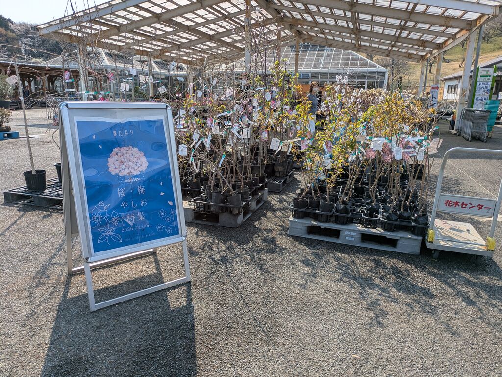 販売している花木の種類はすごそうです!エクステリアも工夫されていて、おしゃれなビニールハウスが楽しかったです。カラフルな傘で覆われる景色も見たかった、、、 (訪問:2026/02/14)