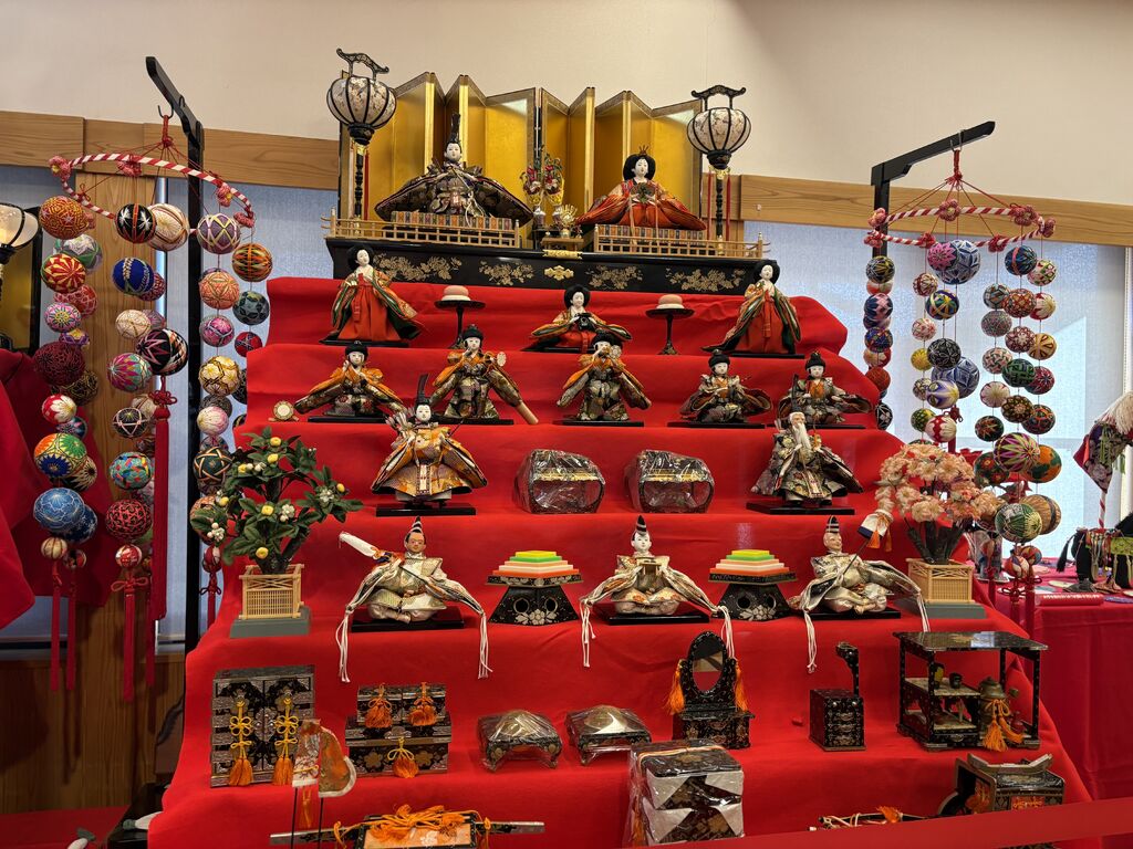 鹿沼おひなさま巡りということでこちらにも伺いました。建物の中に7段飾りが3台飾られこちらも圧巻です。金屏風と黒屏風とではまた人形の見え方が違うものです。こちらの吊るし雛は天井から吊るされているので迫力のある美しさでさです。 (訪問:2026/02/19)