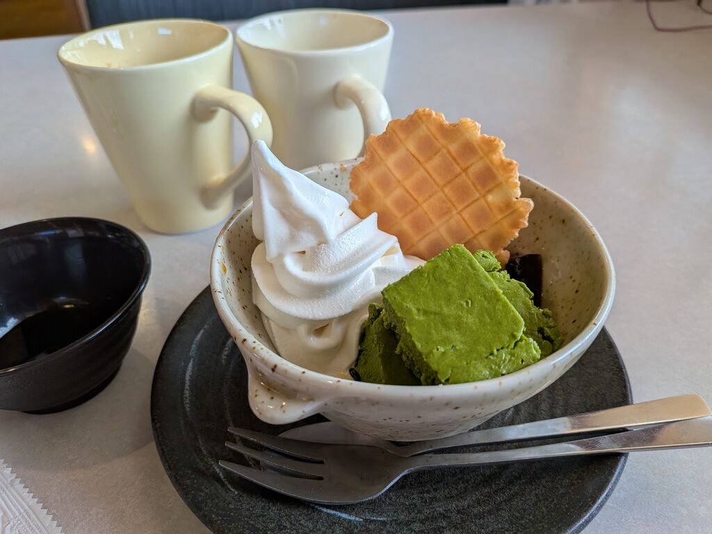 黒糖ゼリーと抹茶ムース・青のりの夢杉玉ポテト・とろろせいろそば・ドリンクバーをいただきました。さすが、日曜日のランチタイム。駐車場はもちろん、お店の中もたくさんのお客様で満杯でした。ですが、店員さんの頑張りのおかげで待ち時間も少なく席に案内していただき、注文からお料理の提供時間もすごい短かったです。いただいたお料理は全部激旨。黒糖ゼリーと抹茶ムースは、ぷるぷるの黒糖ゼリーもふわっと食感の抹茶ムースもまじ美味。青のりの夢杉玉ポテトも、見た目のインパクトもすごいけど、中身も手間がかかっていてすごいおいしかったです。とろろせいろそばも、食べ始めたら止められないおいしさ。一気の完食です。ドリンクバーでいただいたのはココア。ココアだけでもプレミアムココアや抹茶ココア、バニラココアなどがありココア好きにはパラダイスのようなドリンクバーです。久しぶりにお伺いしましたが、やっぱり大好きなお店です。 (訪問:2025/09/21)