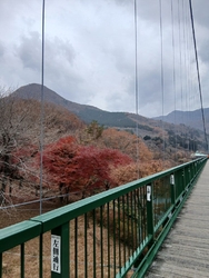 今日は、連休明けの11月25日(火)の平日です。以前から知ってはいたものの、来るのは初めてでした。ここでも65歳以上は安くなり、年取るのも悪くないなって思っています。ところで、平日でも来る人は、そこそこいるのですが、歩くたび橋が揺れて、なかなかまっ直ぐには歩けないものです。でも、周りの木々が紅葉して、とてもきれいでした。 (訪問:2025/11/25)