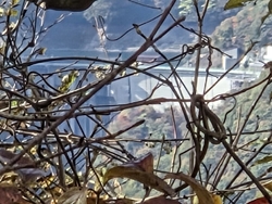 日塩もみじラインの途中から、遠望した川治ダムです。とても小さくしか見えないのですが、拡大すると、ハッキリと川治ダムの威容がみてとれます。いつもは、通り過ぎてしまっているのですが、この日は、しっかりと観察して来ました。山の上から観る川治ダムも素晴らしいものですね。 (訪問:2025/11/03)