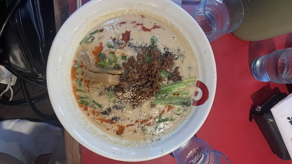 こちらの味噌ラーメンのファンです♪メニューをにらめっこして迷った挙句、今日は、濃厚胡麻味噌坦々麺を初注文しました(^^)濃厚スープは、麺に絡んで、食べやすく、スルスルと口の中へ(笑)辛さはあまり感じなかったです。胡麻の香りで、食欲爆進(笑)あっと言う間に完食しちゃいました★ごちそうさまでした♡美味しく頂きました(*^^*) (訪問:2025/11/02)