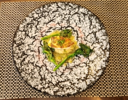 今日は美味しいと教えていただいた、小山市乙女のリストランテビアンカに行ってきました。約50分の道のりでした。15分前に駐車し12時開店を待ちます。5分前になっても他にお客様がいない。少し不安な気持ちでドアを開け入店。ママさんが今日はお一人だけと。まあこんな日もありますよね。そんな訳で貸切状態を楽しみました。先ずは前菜、焼きリゾットに載ったいちぼ、富山湾のホタルイカパスタ、鹿児島産真鯛のポワレにふきのとう、デザートは焼きパンナコッタなど趣向を凝らした創作料理でした。初めてなので良く分からないまま完食でした。ママさんが料理の説明を細かくしてくれました。書ききらないところもありますが、少しでも興味があれば、事前に予約し召し上がって下さい。現金で会計を済ませて、ご主人とママさんと美味しいお店の情報交換を楽しみ、店を後にしました。ごちそう様でした。 (訪問:2026/04/02)
