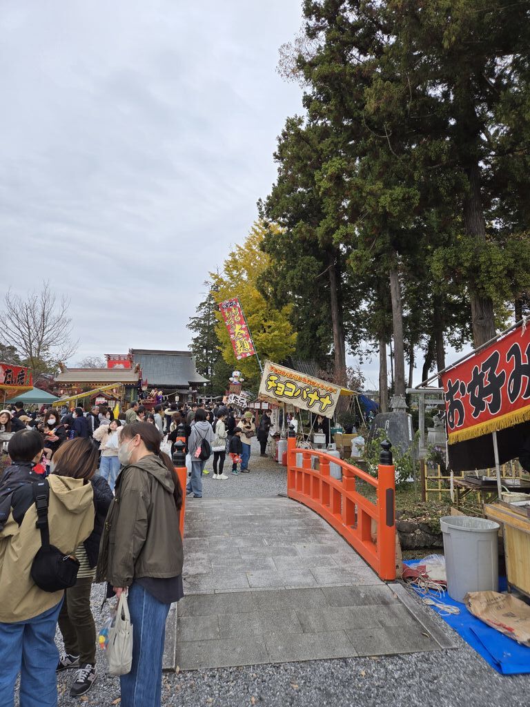 毎年訪れている酉の市のお祭りです。入口からお囃子や屋台で、賑やかでした。お賽銭を入れてお参り後、お祭りの様子を楽しみました。福まきでは、子供も大人もみんな必死。こっちに投げてと、みなさんアピールしてました。他こちらの神社特有の強卵式の座敷を拝見。始まる前から、厳かな雰囲気が出ています。これからもずっと続いて欲しいです。 (訪問:2025/11/23)