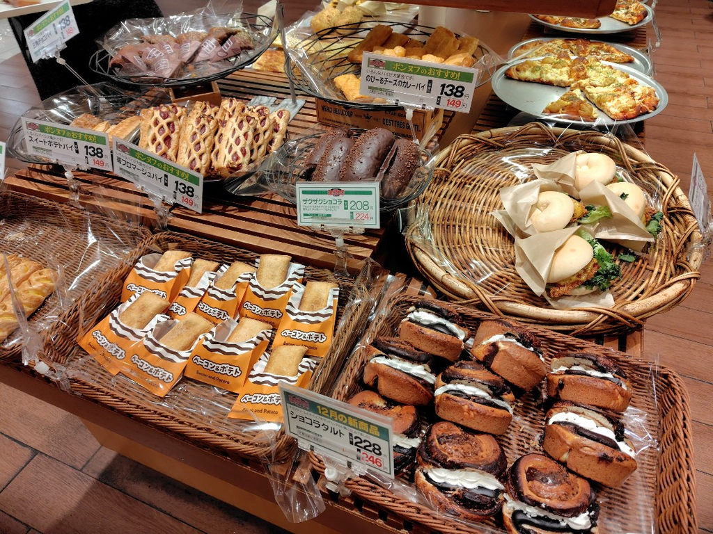 夕方まで焼き立てパンが並ぶよう、こまめに焼いております。人気の明太子フランスや食パンをはじめ種類もいっぱい!木曜日はポンヌフの日でお買い得品があり、週末には恒例のバイキングを実施!ぜひご来店ください。スタッフ一同お待ちしております。