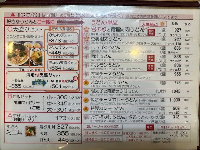 | ホルモンうどん | (温)890円 (つけ)+80円 |