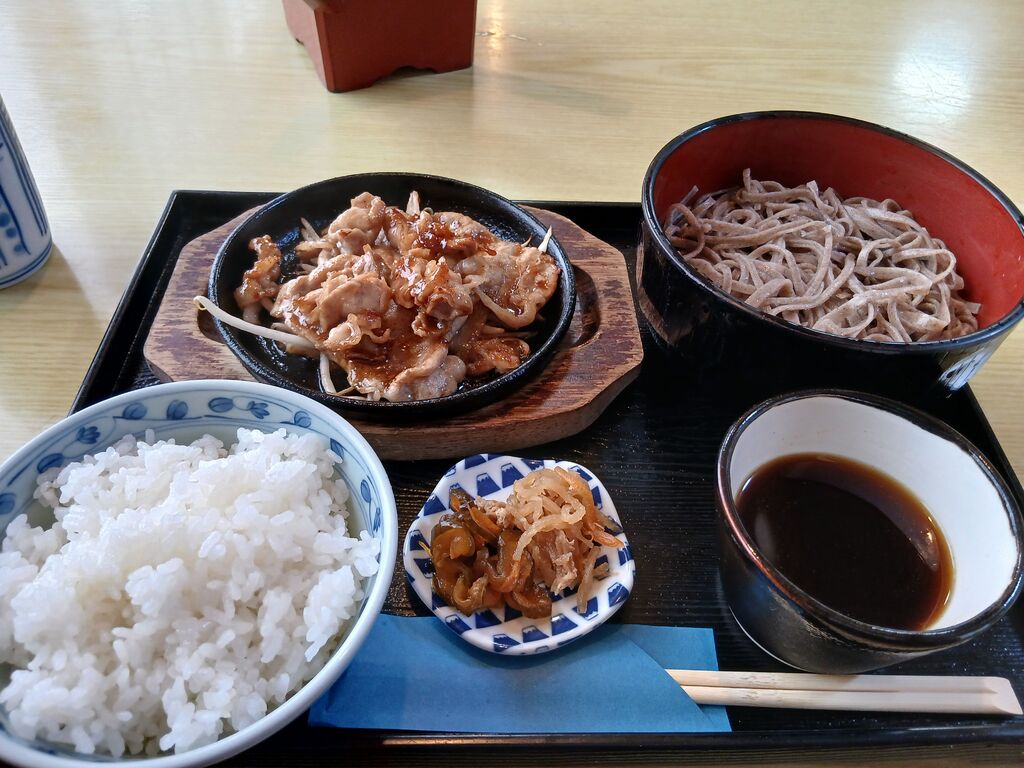 今までに、何度となく食べに来ていたのですが、今日は、月曜日の平日に来るのは初めてで、日替わりランチメニューがあることを知り、しょうが焼き定のごはん大盛を、食べて来ました。そばは、香り良く、のどごしが良く、歯ごたえがあり、とてもうまかったです。また、しょうが焼きを見て、ごはん大盛にしました。肉がアツアツで、少し味が濃い目で、大盛が正解でした。とてもうまかったです。ごちそうさまでした。 (訪問:2024/12/16)