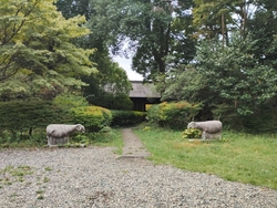 今日は益子参考館に訪れました。広い敷地内に建物がいくつかあります。人間国宝の濱田庄司さんが収集した作品が展示されています。奥には現役の登り窯もあります。昔伺ったときにはイベントでお茶会が開かれていた建物を懐かしく拝見しました。カフェも併設されています。とてもゆったりした気分になりました。 (訪問:2025/10/04)