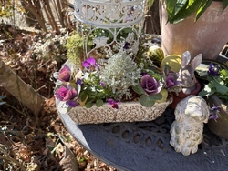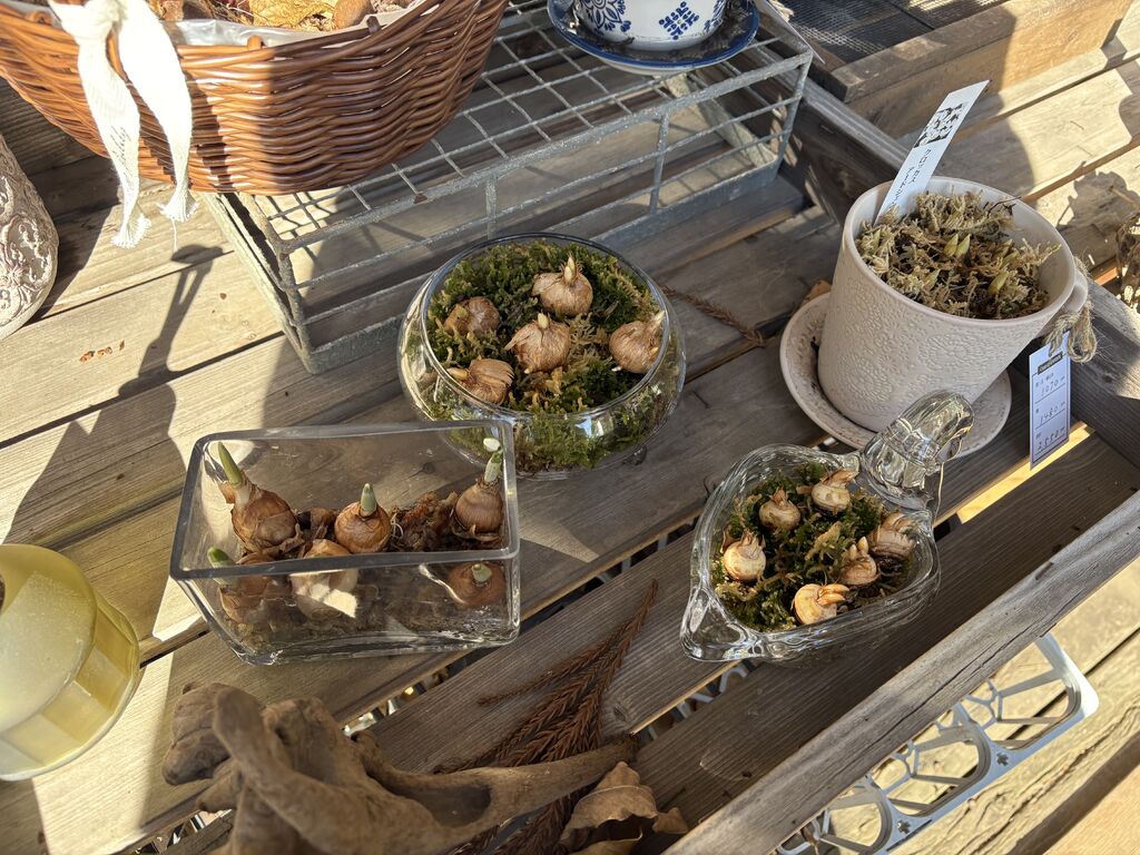私的にガーデニングの師匠のようなお店です。行って見ると真似してみたい寄せ植えがたくさんあります。小さな球根や水苔や器、そして手入れされた花はどれも丁寧に管理されています。お花のリースも売っていて素敵でした。じっくり見ていても飽きないぐらい素敵なお店です。 (訪問:2026/01/01)