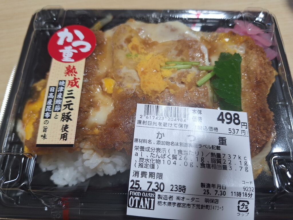 お昼を買いに寄りました☆この日のオススメは“かつ重”で、ガッツリ食べたい私は大で、少食な母には小を購入。デザートは期限が近いから30%OFFでした。すぐ食べちゃうからラッキーでした。“えびフライ”などのお惣菜や、不揃いだから安いけど美味しい味は変わらないお得な“バウムクーヘン”などのおやつも充実しています(^ー^) (訪問:2025/07/30)