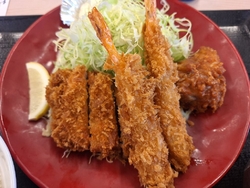 家族でガッツリお昼を食べに行きました☆旦那は“タレカツ定食”1089円、私は“海老・チキンカツ・から揚げ定食”(海老フライ2本、チキンカツ1枚、から揚げ1個)869円をチョイス。子ども達は、カツ丼(梅)682円に、Bセット(豚汁&温玉)を付けてボリューミー!家族皆お腹いっぱい大満足でした(^ー^) (訪問:2025/11/23)