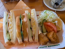 超久しぶりにお伺いしました。いただいたのは昼コメプレートのミックスサンド。ドリンクはカフェインレスコーヒー。パンがふっくら!柔らか!しっとり!でまじおいしい。たまごペーストも超なめらかでおいしいのなんの。きゅうりもレタスもトマトも、全部おいしいので、ボリュームあるサンドイッチなのに、あっという間に食べ終わってしまいました。コメチキもかりっとジューシーで、極旨です。カフェインレスコーヒーも、コクがあってすっごいおいしかったです。サイズ選べないのがすっごい残念でした。次回お伺いする時は、食欲抑えて、のんびりゆっくり、おいしいコーヒーとお料理を満喫したいと思います。 (訪問:2026/02/24)