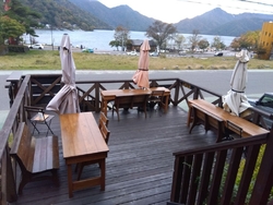 二荒山神社中宮祠からの帰りに歩きながらカフェ探し♪赤鳥居の近く、通りからちょっと奥に入った三角屋根の可愛らしいお店です♪スリッパに履き替えておじゃますると手作りの雑貨たちがお出迎え〜( ꈍᴗꈍ)♪中禅寺湖を眺めながら手作りのケーキやランチを楽しめます♪おじゃました時にはランチのオーダーは終了でしたがテラス席で美味しそうなカレーやグラタンをいただいている方々がいらっしゃいました。テラス席はワンちゃんもOK〜(^^)v日も暮れかかってきて寒かったので今回は店内でコーヒーとガトーショコラのケーキセットをいただきました。熱々のコーヒーとコクがあるけどやさしいケーキにほっこりシアワセ〜( ꈍᴗꈍ)☆他にも気になるメニューがいろいろあるのでまたぜひリピしたいです♪次回はシフォンケーキをいただきたいなぁ〜☆ (訪問:2025/10/18)