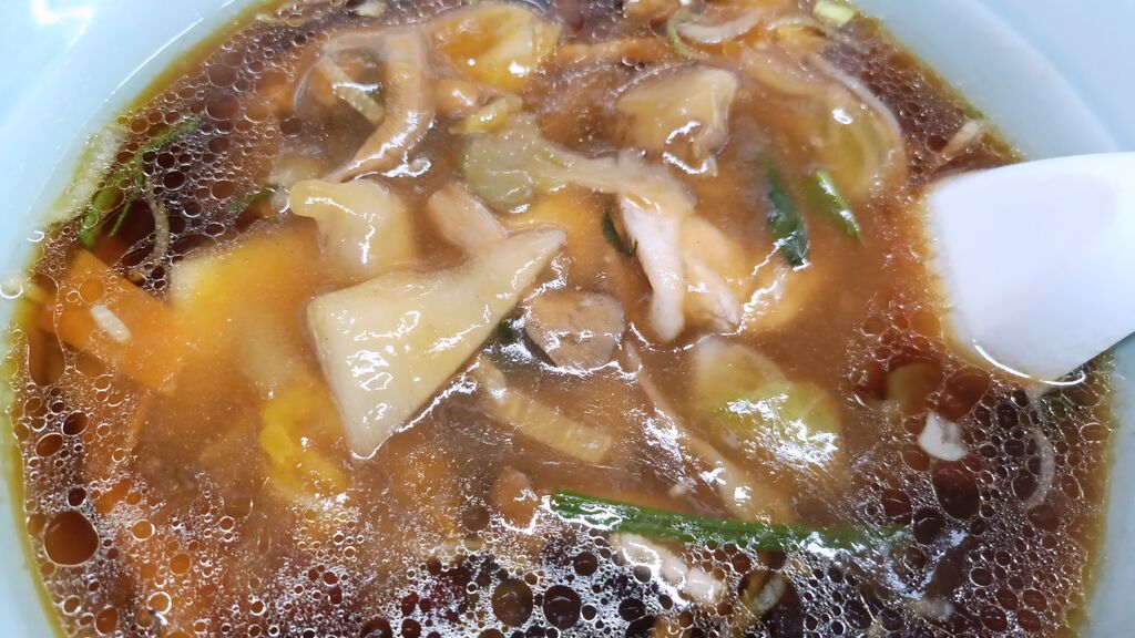 やっと来れた~(笑)《明朗ラーメン》を注文♪しょうゆ味のスープは少し濃いめだけど、こくと旨味があって少し甘めな感じ。具は全体的にざっくり大きめで、お店人気No.1の肉うま煮を乗せた感じで あん がかかっていました。細麺に良く絡みバランス良くツルツル食べちゃいました(笑)老店ならではの雰囲気と味を楽しめました(*^^*) (訪問:2025/11/24)