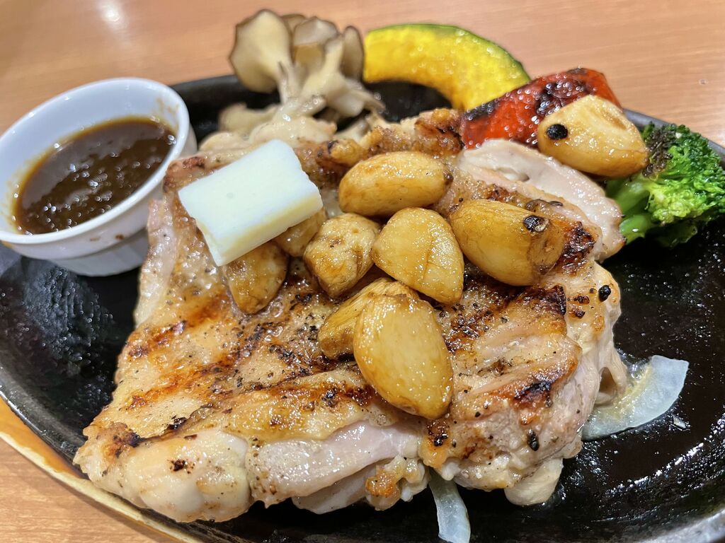 少し遅い仕事納めです。一年の疲れを癒す夕飯。にんにくたっぷりの肉が良いかな?牛肉は高いので鶏肉を選択。付け合わせを焼き野菜にしてグレードアップ。にんにくご効いていて旨いです。お正月に確り身体を休めます^_^ (訪問:2025/12/29)