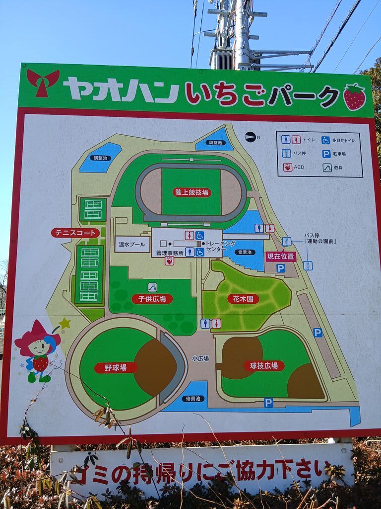 いつも野尻直売所に行くときは、公園の前を通り過ぎていました。今回ふと散歩してみようと思い、駐車場を見ると空いていたので、散歩してきました。最初いちごパークの案内図を見て歩いていましたが、テニスコートまで来たら、ウォーキングコースの案内が出ていて、それを見てゆっくりと歩いて来ました。これからの自分の散歩コースに、加えて楽しもうと思いました。 (訪問:2026/01/09)