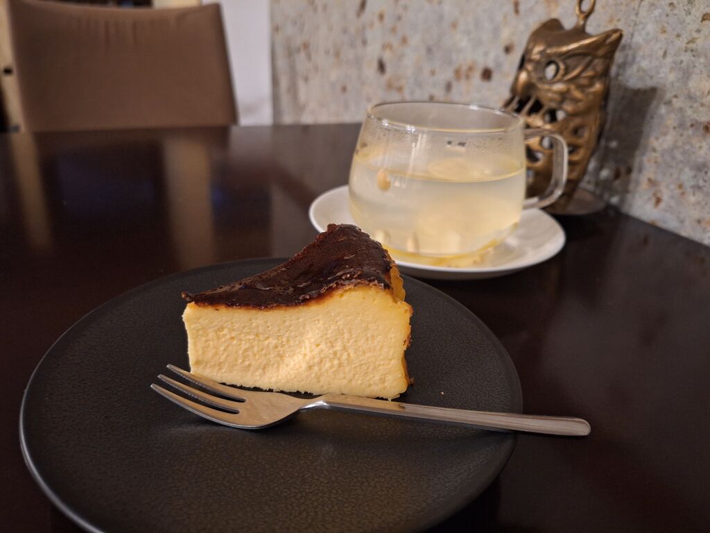 すごーく久しぶりにお邪魔しました。16時半過ぎでスイーツ類は半分以上が完売。やはり人気店ですね『バスクチーズケーキ605円』『柚子ネード770円』をチョイス。本を読みつつスイーツを!と思っていたためゆったり周りの気にならない壁沿いを確保。大谷石かな?素敵な石壁にぐっと心捕まれちゃいます。バスチーは半熟のような滑らかかつ蕩けるような食感で、チーズのコクもありつつ、後味スッキリなので、次々と口に運んでしまう美味しさ☆甘さ控えめの柚子ネード、柚子の香りとお味が効いていて美味しく、甘すぎないのでスイーツと併せても何ら問題がなく、お食事とも相性が良さそうなお味♪美味しいメニューと居心地の良さでついつい読書も進み、長居してしまいました。スイーツだけでなくショーケースにはキッシュもあり、とっても気になってしまいました。今度は時間を空けずにまたお邪魔して、気になるメニューを頂きたいです^^ (訪問:2026/01/04)