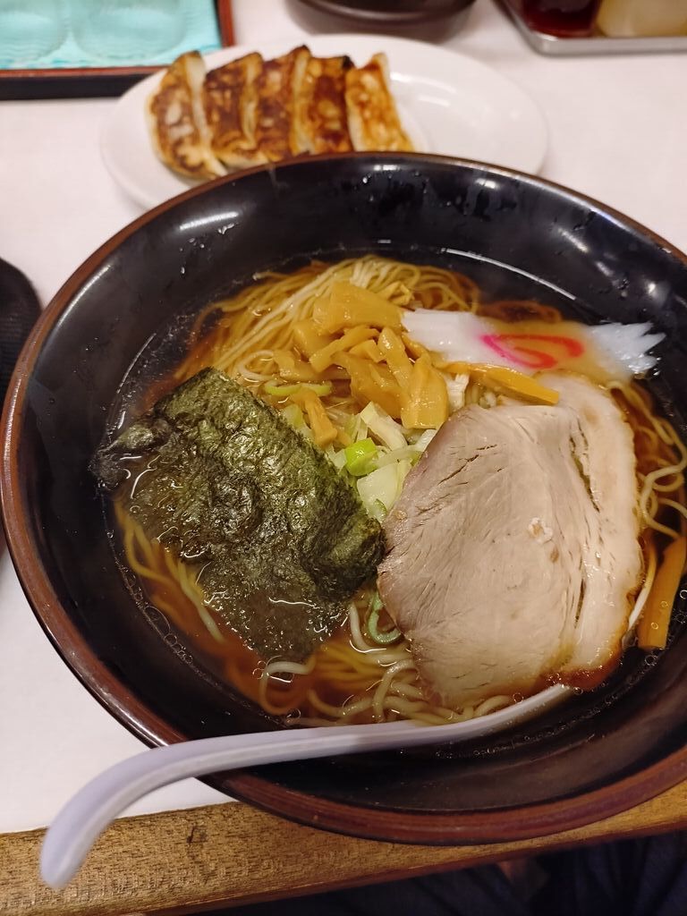 またまた、くるまやラーメンにて、美味しいラーメンをいただきました。今回は、いただいた美味しいラーメンについて、お話をしたいと思います。いただいた美味しいラーメンは、写真に掲載しました通り、あっさり塩味ラーメンに無料の餃子です。あっさり塩味ラーメンは、文字通り、あっさりとした塩味のラーメンです。スープの味が絶品で、歯ごたえの良い麺や他の具との組み合わせはグッドです。塩味が好きな方は、きっと、お気に召されるでしょう。もちろん、餃子との相性もバッチリです。皆さんも、是非、食べてみてください。今回も読んでいただき、誠にありがとうございました。 (訪問:2025/11/09)