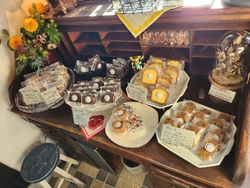 久しぶりに伺いました。どれも美味しそうで迷いましたが、見た目に惹かれてプレーンと胡桃のスコーンを購入。リベイクしてからいただきました。スコーン独特のポソポソ感は全くなく、中はパンのように柔らかめで食べやすい。外側はガリっとかなりハード。そのコントラストがとにかく最高。香ばしい胡桃も良く合う。とても美味しかったです。甘さはほとんどないのでジャムをつけて食べましたが、それが最高にマッチしました。このスコーンはバターも合うと思います。次回はぜひ、バター&ジャムでいただきたい。かなりおすすめです。 (訪問:2025/11/20)