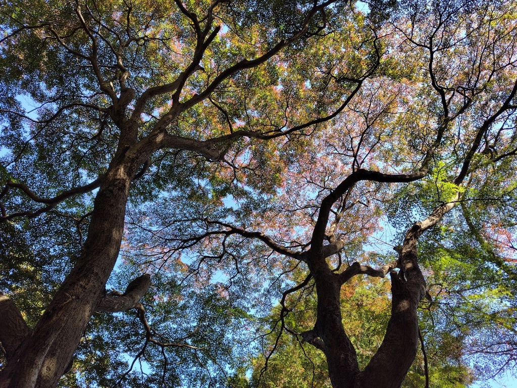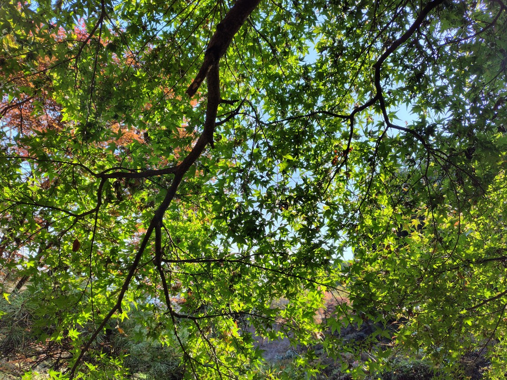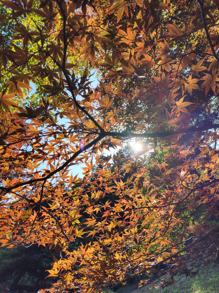 もみじ祭りは11月10日〜25日だそうですが、ひと足先に行ってきました。紅葉のピークはこれからですが、青々した葉から、オレンジや赤に色づいたもみじ、黄色いイチョウとカラフルで、とっても素敵でした。 (訪問:2025/11/08)