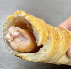 シェレンバウムさんは地元の肉製品メーカーのローマイヤさんとのコラボのパンが有ります。写真は普通のホットドッグ(そう云う名前です)とソーセージスティック。ホットドッグはジューシーなソーセージと肉汁を吸うふかふかパンの相性がgood。お願いするとマスタードを掛けてくれます。スティックはソーセージを包む様にスパイラル状にパンを巻いてあります。こちらはカリッとした食感。何方も食べ応えありますよ^_^ (訪問:2025/12/26)