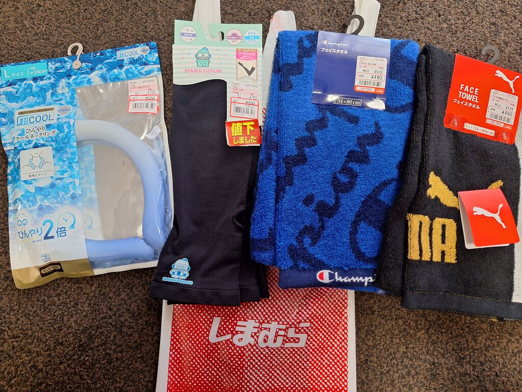 子どもの夏合宿のタオル等を買いに行きました☆可愛いハンギョドンのアームカバーがお値下げになっていたので自分用に購入。しまむらのプライベートブランド「CLOSSHI PREMIUM」の商品“超COOL ひんやりネックリング”が通常759円(税込)ですが、セール中で550円(税込)になっていたのでゲットし、夏休みに重宝しました。特殊ジェル配合で冷たさ2倍でひんやり感キープです(^ー^) (訪問:2025/07/24)
